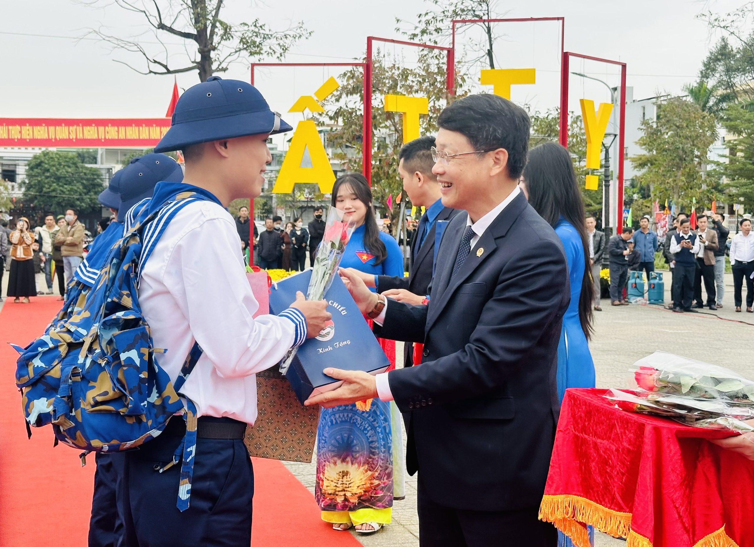 Chủ tịch UBND huyện cũng gửi lời chúc đến toàn thể chiến sĩ tân binh sức khỏe, luôn giữ tinh thần vững vàng để hoàn thành xuất sắc nhiệm vụ được giao trong môi trường quân ngũ. Gương mẫu chấp hành và vận động nhân dân thực hiện tốt đường lối, chủ trương của Đảng, chính sách và pháp luật của Nhà nước.
