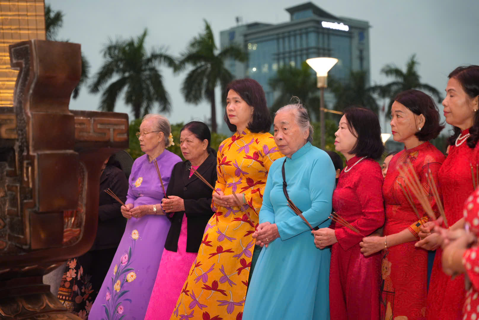 Trước đó, 6 giờ 15 phút sáng cùng ngày, Đoàn Hội LHPN thành phố do đồng chí Hoàng Thị Thu Hương, Chủ tịch Hội LHPN thành phố dẫn đầu, đã đến dâng hương, đặt vòng hoa tri ân các anh hùng, liệt sĩ tại Đài Tưởng niệm Liệt sĩ thành phố.