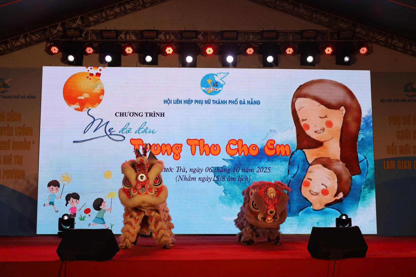 Chương trình mang đến cho các em một mùa Trung thu trọn vẹn niềm vui, với các tiết mục múa lân, văn nghệ, phá cỗ, trông trăng cùng chị Hằng và những món quà yêu thương.